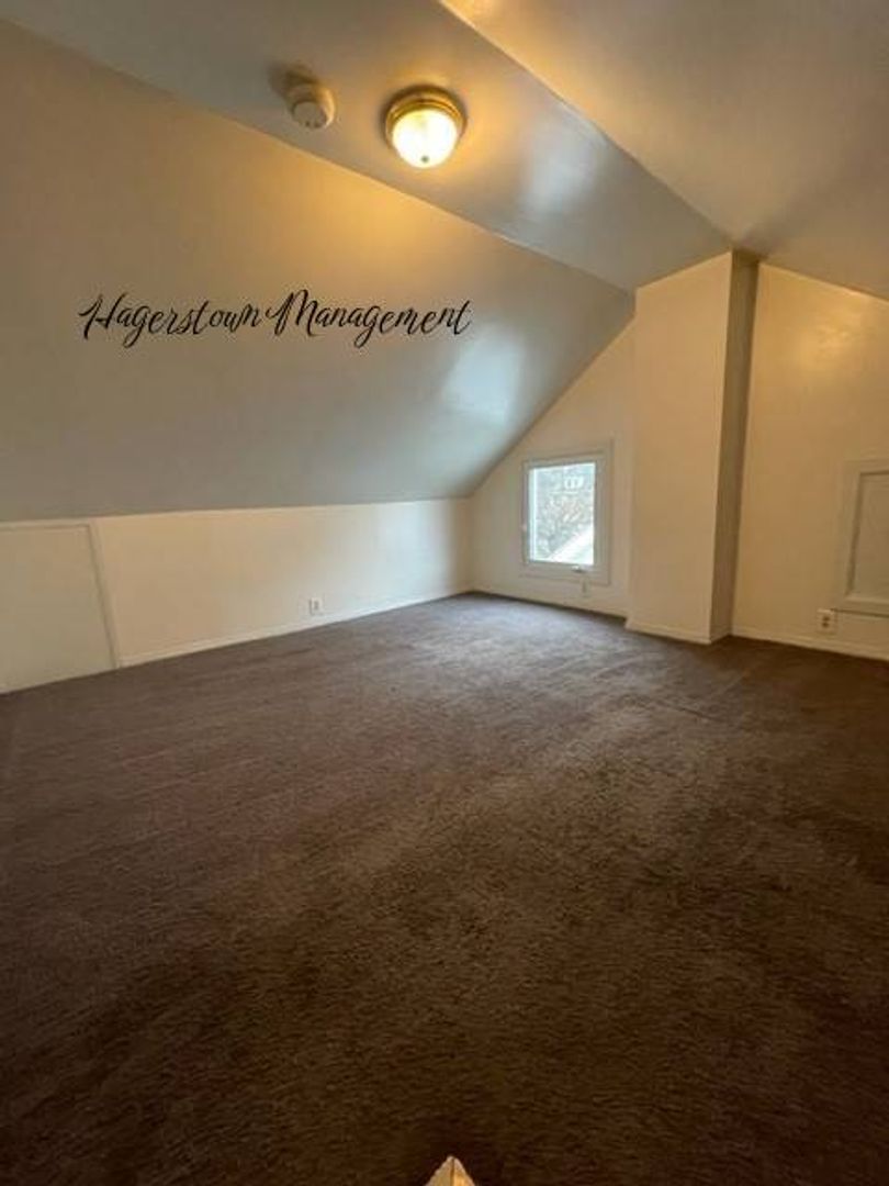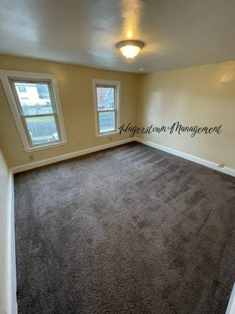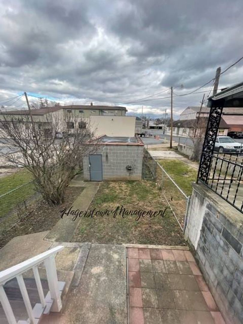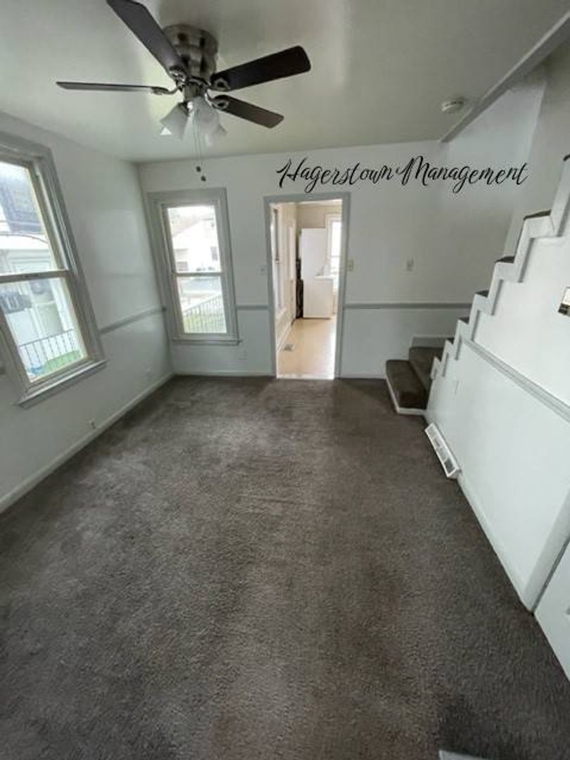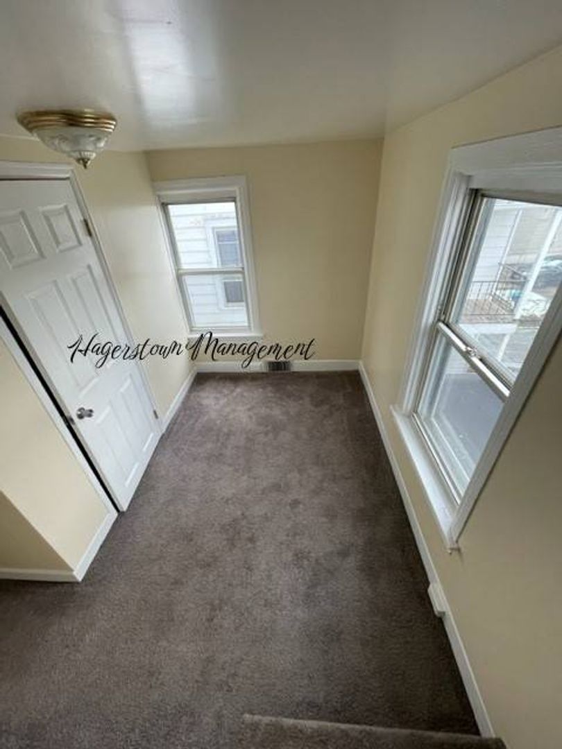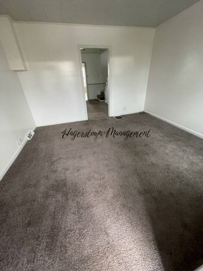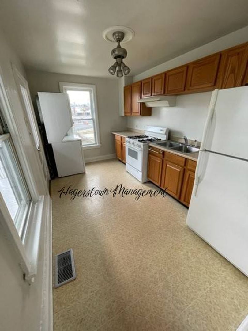 2 story duplex near Hagerstown Fairgrounds. 1st floor has living room, dining room and eat in kitchen. Master bedroom, 2nd bedroom and nice 3rd bedroom on 2nd floor. Fenced yard, detached garage off-street parking, washer/dryer (as-is). New Gas furnace with Central Air. Gas Stove. City electric and water, sewer, trash. $1,000.00 month plus Electric and Gas.